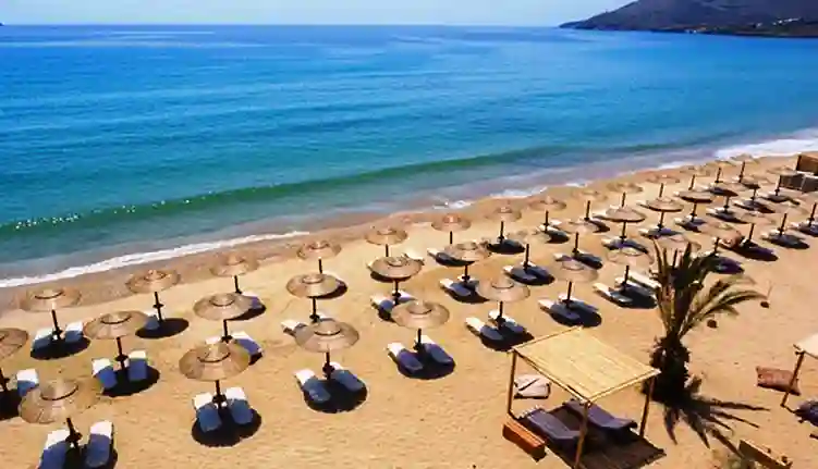 During the day, it’s a picturesque spot for sunbathing and swimming, while evenings bring a magical transformation with the setting sun painting the sky in hues of orange and pink. Batsi’s beach, set against a backdrop of traditional white-washed houses and meandering alleyways, offers a unique experience where the vibrant village life and serene beachside relaxation coexist harmoniously.