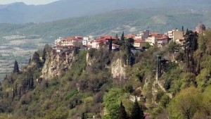 Edessa, perched at a high altitude in the mountains of Northern Greece, offers a distinct experience with its cooler, mountainous climate. This city is renowned for its spectacular natural waterfalls, most notably the Karanos, which