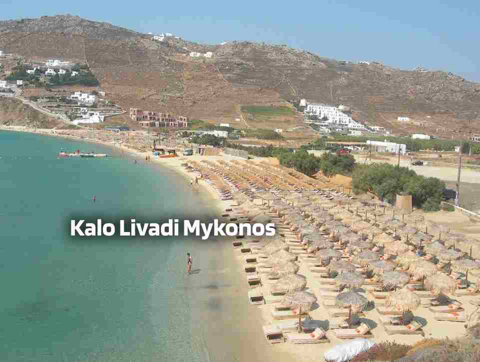 - Kalo Livadi, one of the longest beaches in Mykonos, is a serene retreat known for its fine, golden sand and clear, shallow waters, making it perfect for families and those seeking a more relaxed atmosphere. Located on the south-eastern side of the island, this beach is framed by gentle hills and offers a picturesque setting for sunbathing and leisurely swims. Despite its tranquility, Kalo Livadi is also home to trendy beach bars and restaurants where visitors can enjoy delicious Greek cuisine and refreshing cocktails with panoramic views of the Aegean Sea. The blend of laid-back charm and modern comfort makes Kalo Livadi a beloved destination for all types of travelers looking to savor the quieter side of Mykonos.